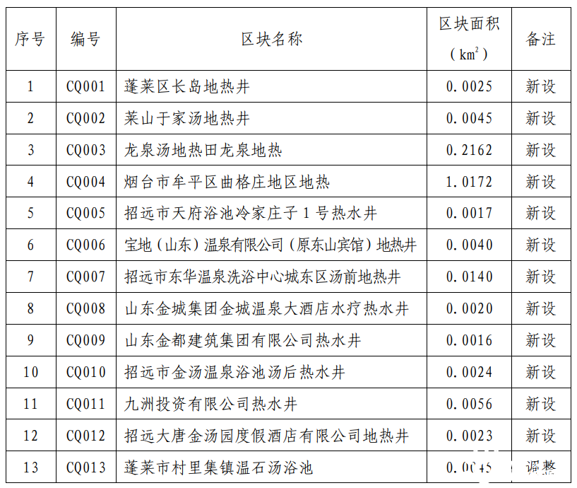 規(guī)劃期內(nèi),共設(shè)置地?zé)峥辈?/a>區(qū)塊2處,分別為山東省棲霞市惠禾·艾山地區(qū)地?zé)崞詹楹?a href="http://m.chclan.com/t/山東.html" >山東省棲霞市長(zhǎng)春湖·霞光地區(qū)地?zé)崞詹?,投放時(shí)間為2022年。規(guī)劃地?zé)嶂攸c(diǎn)開采區(qū)1處,位于招遠(yuǎn)市東湯地?zé)崽?/a>。重點(diǎn)開采區(qū)內(nèi)要嚴(yán)格按照開采規(guī)劃區(qū)塊優(yōu)先投放采礦權(quán),鼓勵(lì)支持礦山企業(yè)整合重組,優(yōu)化開發(fā)布局,提高資源利用效率。