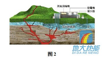 1)熱干巖過程法.與那些只從火山活動頻繁地區(qū)的溫泉中提取熱能的方法相比,熱干巖過程法將不受地理條件限制,可以在任何地方進行熱能開采.首先將水通過壓力泵壓入地下4~6 km深處,此處巖石層的溫度大約在200℃左右.水在高溫巖石層被加熱后,通過管道加壓被提取到地面并輸入到熱交換器中,熱交換器推動汽輪發(fā)電機將熱能轉化成電能.同時推動汽輪機工作的熱水經(jīng)冷卻后可重新輸入地下供循環(huán)使用.這種地熱發(fā)電的成本與其他再生能源的發(fā)電成本相比是有競爭力的,而且這種方法在發(fā)電過程中不產(chǎn)生廢水、廢氣等污染,所以它是一種未來的新能源.