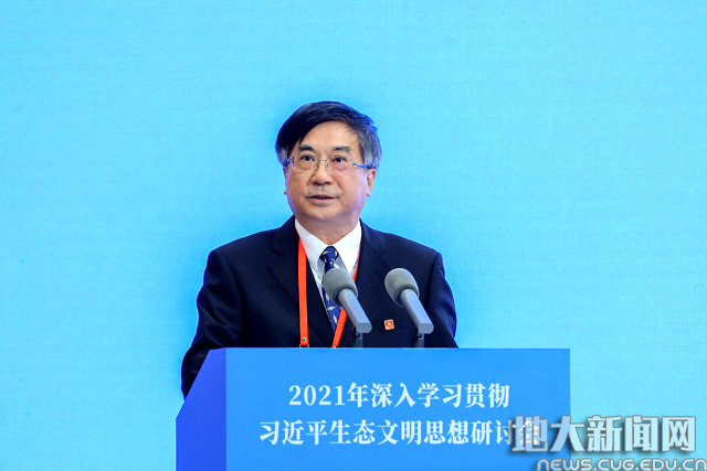 地大新聞網(wǎng)訊(通訊員張華)12月28日,2021年深入學(xué)習(xí)貫徹習(xí)近平生態(tài)文明思想研討會(huì)在成都舉行。生態(tài)環(huán)境部黨組書(shū)記孫金龍,四川省委書(shū)記、省人大常委會(huì)主任彭清華出席主論壇并作主題報(bào)告。校長(zhǎng)王焰新院士作主旨演講,校黨委副書(shū)記王林清、環(huán)境學(xué)院黨委書(shū)記李素礦、公共管理學(xué)院院長(zhǎng)胡守庚、馬克思主義學(xué)院副院長(zhǎng)陳軍、科學(xué)技術(shù)發(fā)展院副院長(zhǎng)郭海湘參會(huì)并分別參加“宣傳推廣”“實(shí)踐創(chuàng)新”“理論創(chuàng)新”“制度創(chuàng)新”4個(gè)平行分論壇。