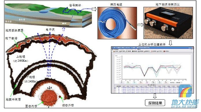 1、探測(cè)原理  UMF-Y05型探測(cè)系統(tǒng)是在地表通過(guò)探針接收來(lái)至地球內(nèi)部的地下磁流體電磁波,經(jīng)探測(cè)電纜到地下磁流體探測(cè)儀,由探測(cè)儀提取特征信息并送上位機(jī)綜合分析得出探測(cè)結(jié)果。