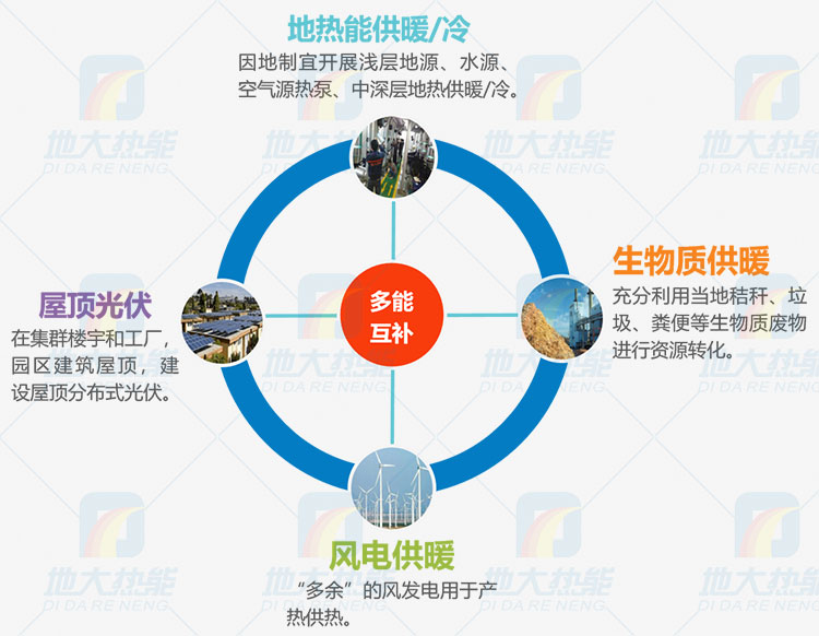 地?zé)?/span>+(風(fēng)能、太陽(yáng)能、氫能、儲(chǔ)能、水能、生物質(zhì)能等)新能源,根據(jù)因地制宜、多能互補(bǔ)實(shí)現(xiàn)能源綜合開發(fā)利用。